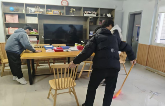 (同学们打扫500党团活动室)